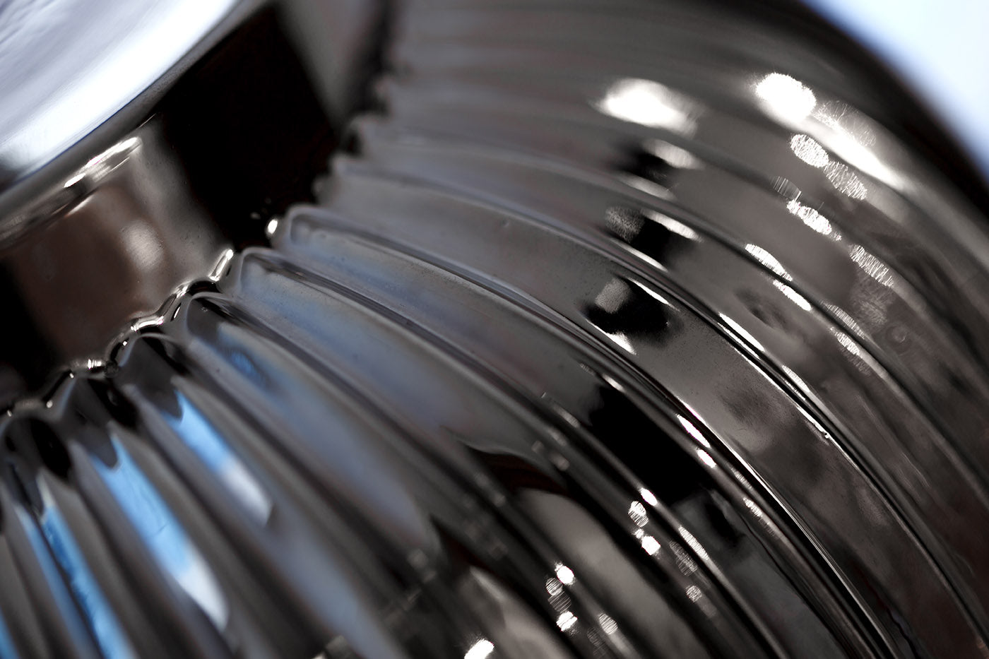Ihre klaren Linien wirken edel und zugleich lebendig – die besondere Textur harmoniert mit der glänzenden Oberfläche und spielt elegant mit Licht und Raum. Jede Leuchte wird aufwendig mit 24-Karat-Gold veredelt, entsprechend einem Feingehalt von 99,9 %.